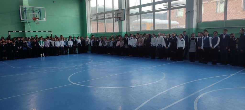 Сегодня наше школьное утро началось со сложившейся традиции — торжественной церемонии поднятия флагов и исполнения гимнов Российской Федерации и Республики Тыва.