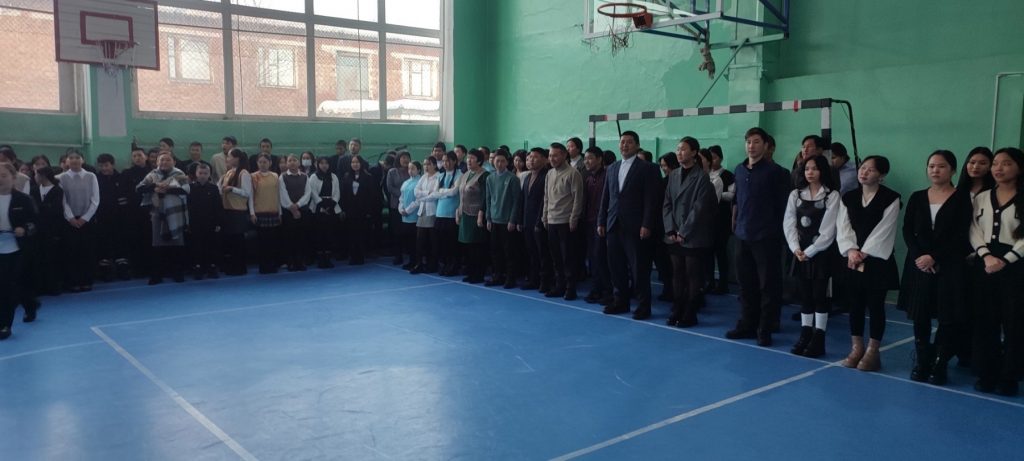 Последняя неделя четверти началась с поднятия государственных флагов РФ и РТ и исполнения гимнов с участием военно-учетного работника с.Чаа-Холь Чигден А.Б. Право поднять флаги предоставили учителю физической культуры Май-оол Анатольевичу Токаш-оол и ученику 10а класса Намчын Амирану — обладателям благодарностей от военного комиссариата Республики Тыва.