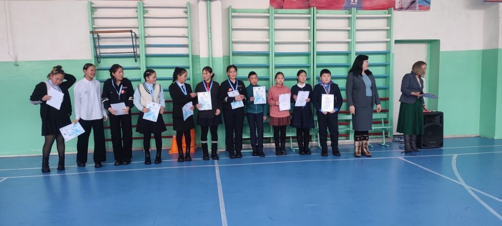 Право поднять флаги получили — призеры республиканских соревнований по спортивному ориентированию Байыр Белек, Чап Аржаан, Бегзи Долаана; победители психологической эстафеты команда 7а класса; призер Героико-патриотического фестиваля детско-юношеского творчества «Звезда Спасения» Дуват-оол Валерия